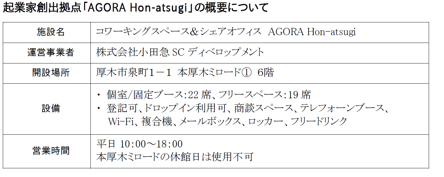 起業家創出拠点「AGORA Hon-atsugi」の概要について