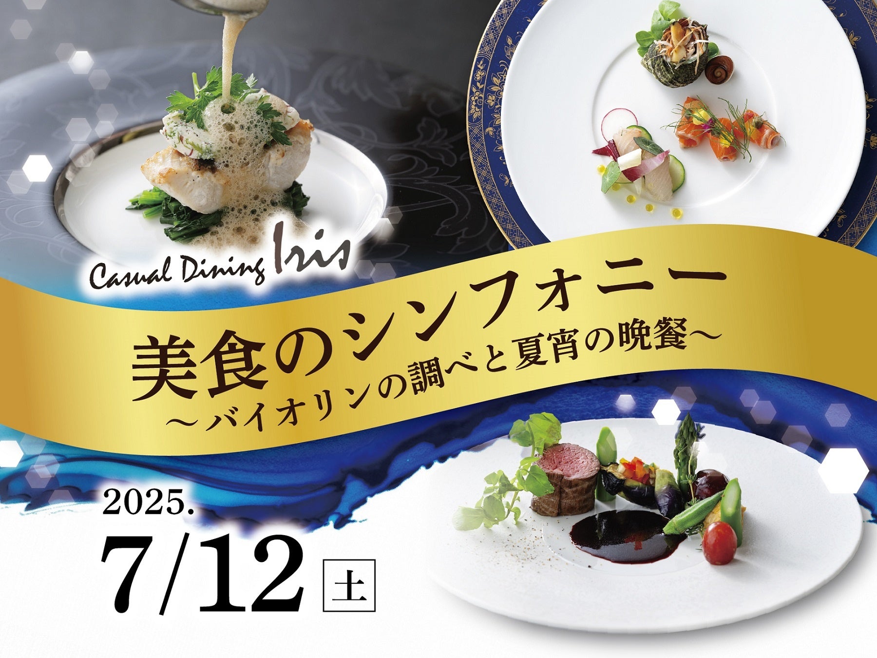 名鉄グランドホテル(愛知県名古屋市 総支配人:山本裕二)は、特別企画第2弾として、7月12日(土)にカジュアルダイニングアイリスにて「美食のシンフォニー~バイオリンの調べと夏宵の晩餐~」を開催いたします。