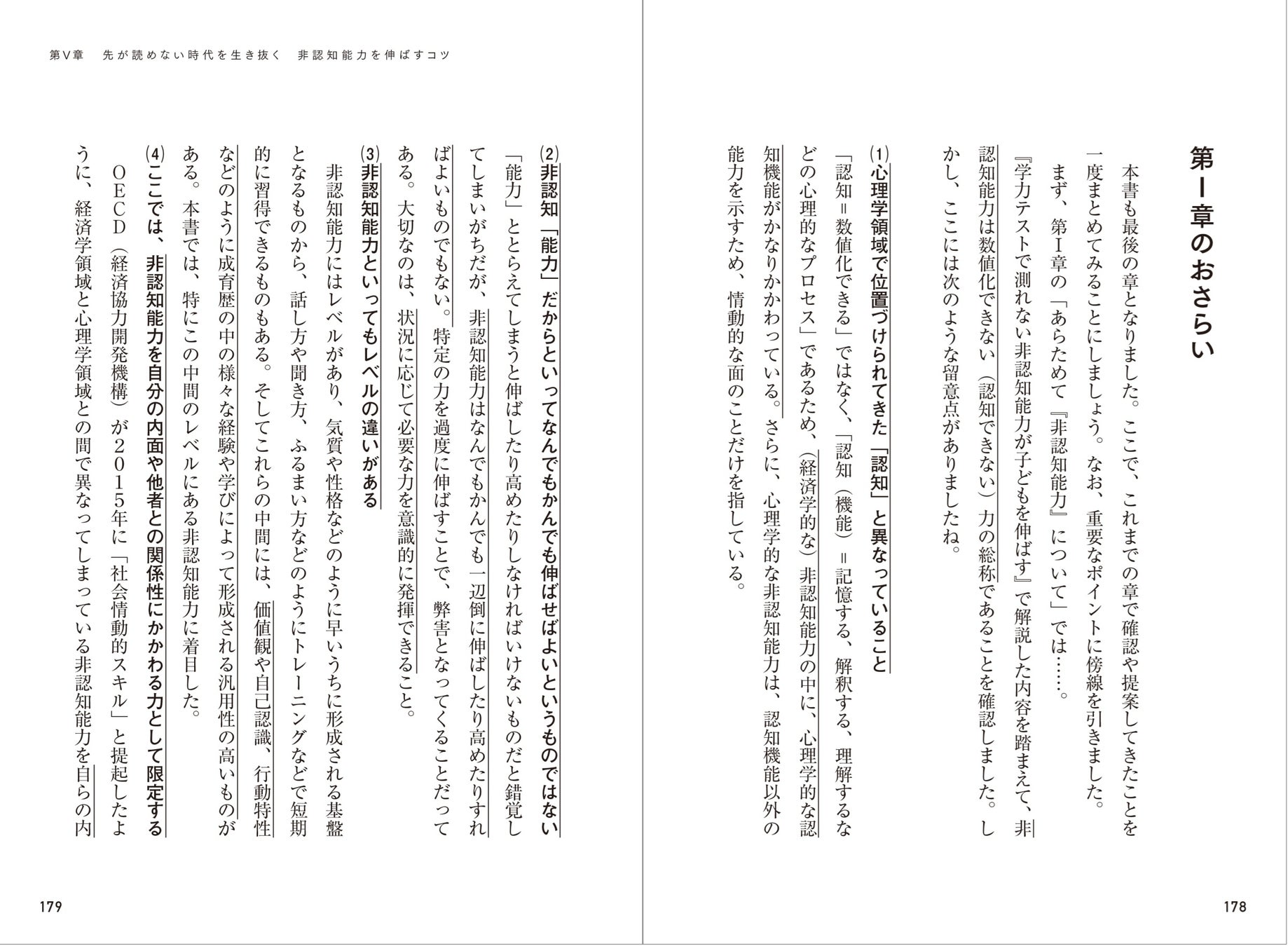 拙著『学力テストで測れない非認知能力が子どもを伸ばす』では、できる限り小難しい言い回しを避けました。そして、教育・保育関係の方から子育て中の保護者の方々まで、広くわかりやすい非認知能力の解説本となるように心がけたつもりです(そうなっていないと思われる方がいらっしゃったら、すみません……)。そのため、研究書的なものを期待されていた方には物足りない内容になっていたかもしれません。
