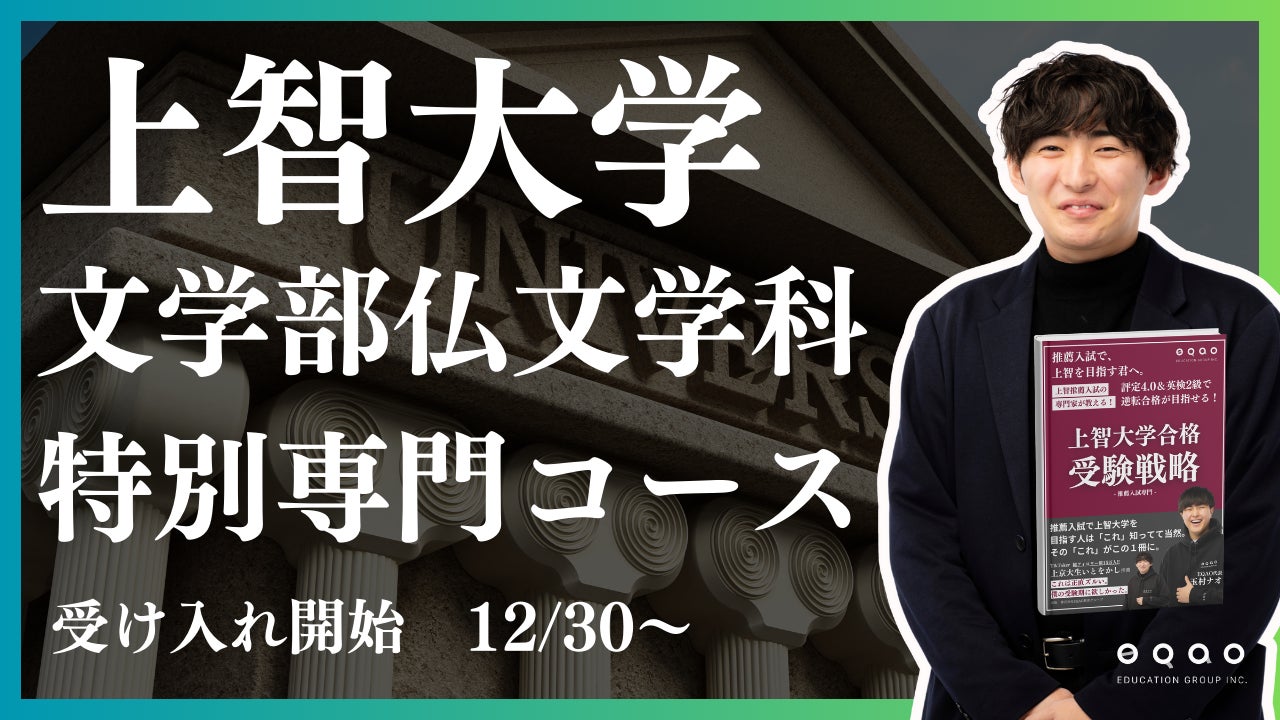 【公募推薦】上智フランス文学科専門 2024年度上智仏文の合格率は67%!上智公募推薦に強いEQAO!上智フランス文学科の専門コースの受け入れを開始!上智フランス文学科に推薦入試で合格するならEQAO