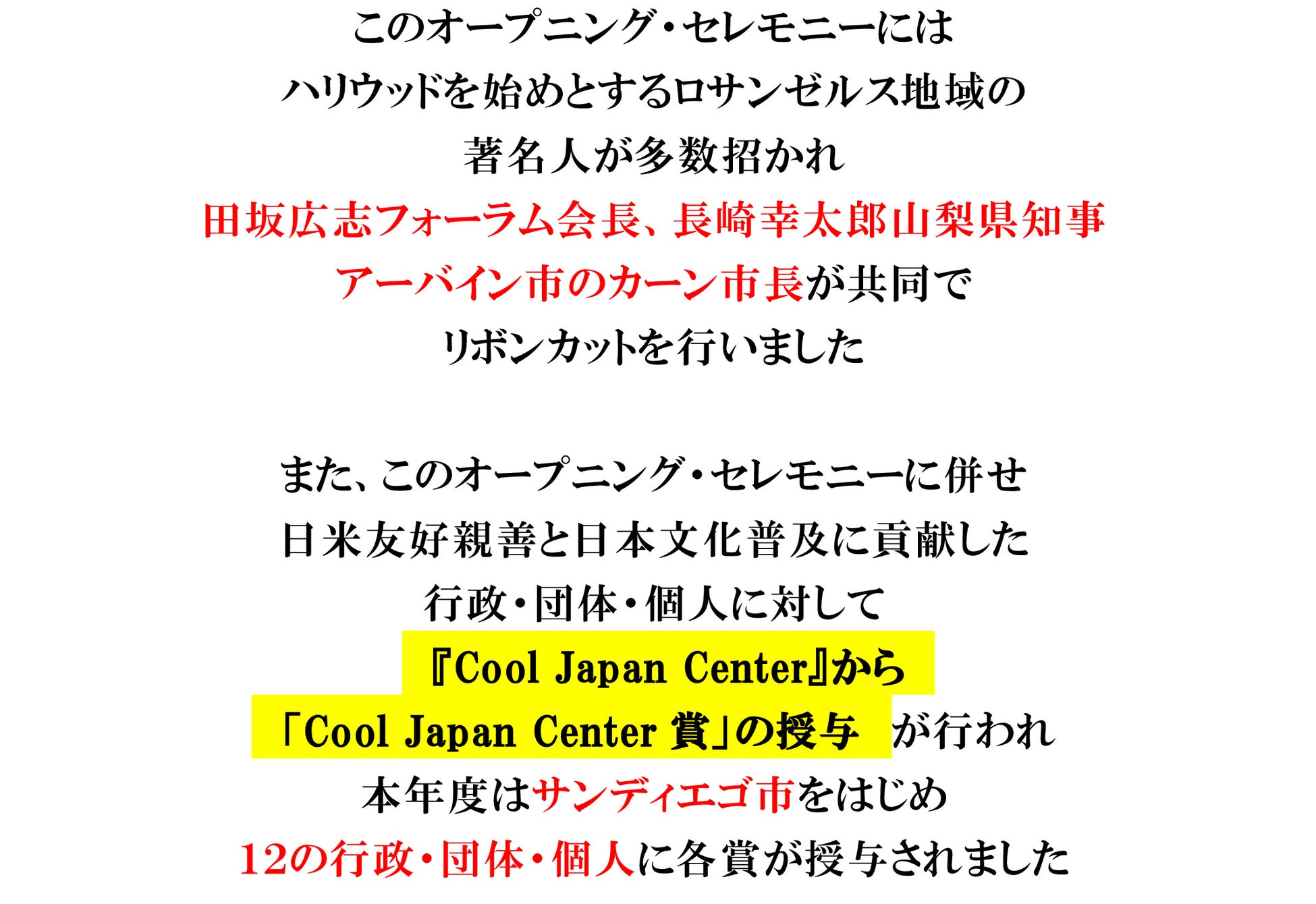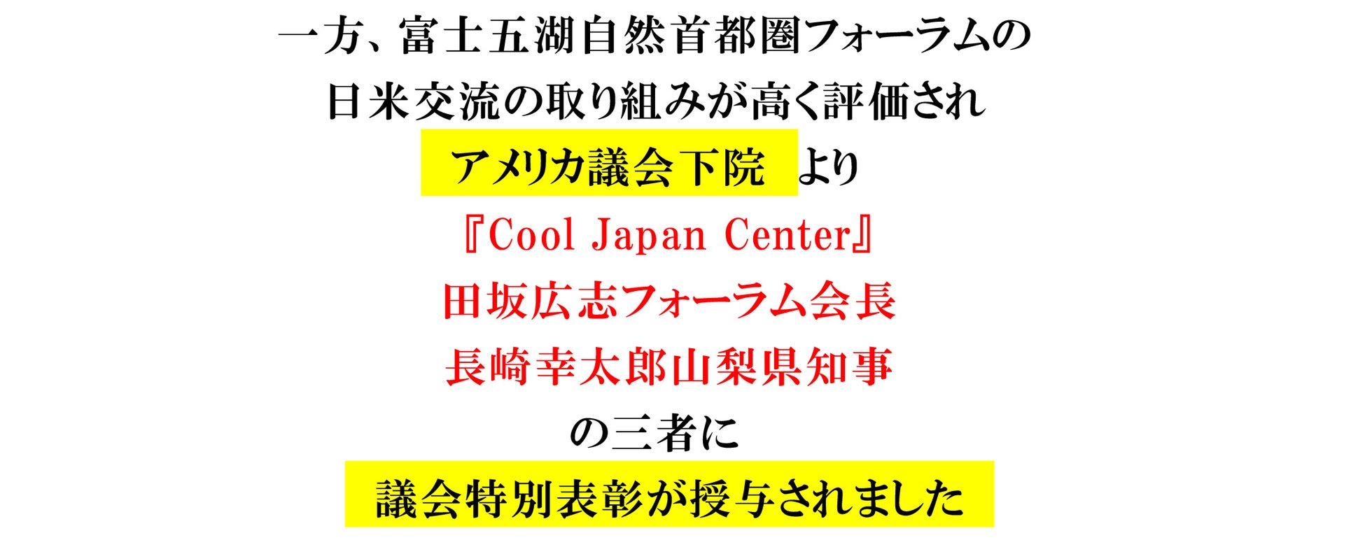 21世紀アカデメイアが中核組織である「富士五湖自然首都圏フォーラム」が、米国アーバイン市に「Cool Japan Center」を開設。田坂広志学長ら3者が、アメリカ議会下院から特別表彰を授賞