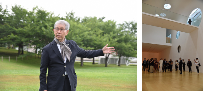 山本理顕さんによる関係者への建物見学ツアーの様子