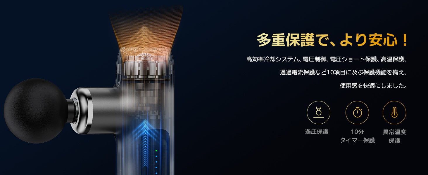 Lihilisの筋膜リリースガンは、細部にまでこだわった上質な仕上がりで、耐久性と安全性も備えています。贈り物としても最適で、2年間の保証付き。万が一、不具合が生じた場合には、日本国内サポートが迅速に対応します。