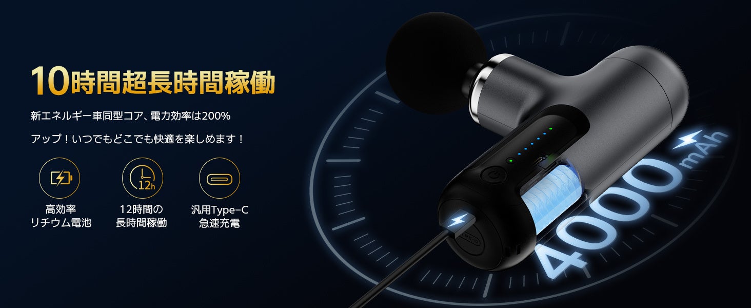 20dBの静音設計と4000mAhの大容量バッテリーにより、フル充電で最大12時間の連続使用が可能です。早朝や深夜でも気兼ねなく使用でき、仕事やスポーツ、家事の後のリラックスタイムに最適です。