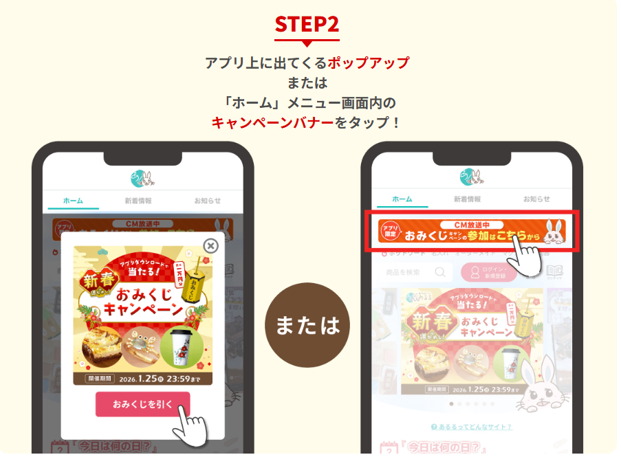 STEP2 あるるモール公式アプリ上に出てくるポップアップまたは、「ホーム」メニュー内のキャンペーンバナーをタップ!