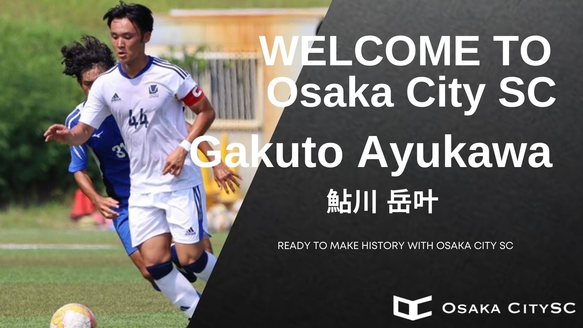 この度、OsakaCitySCに加入することになりました、鮎川岳叶です。