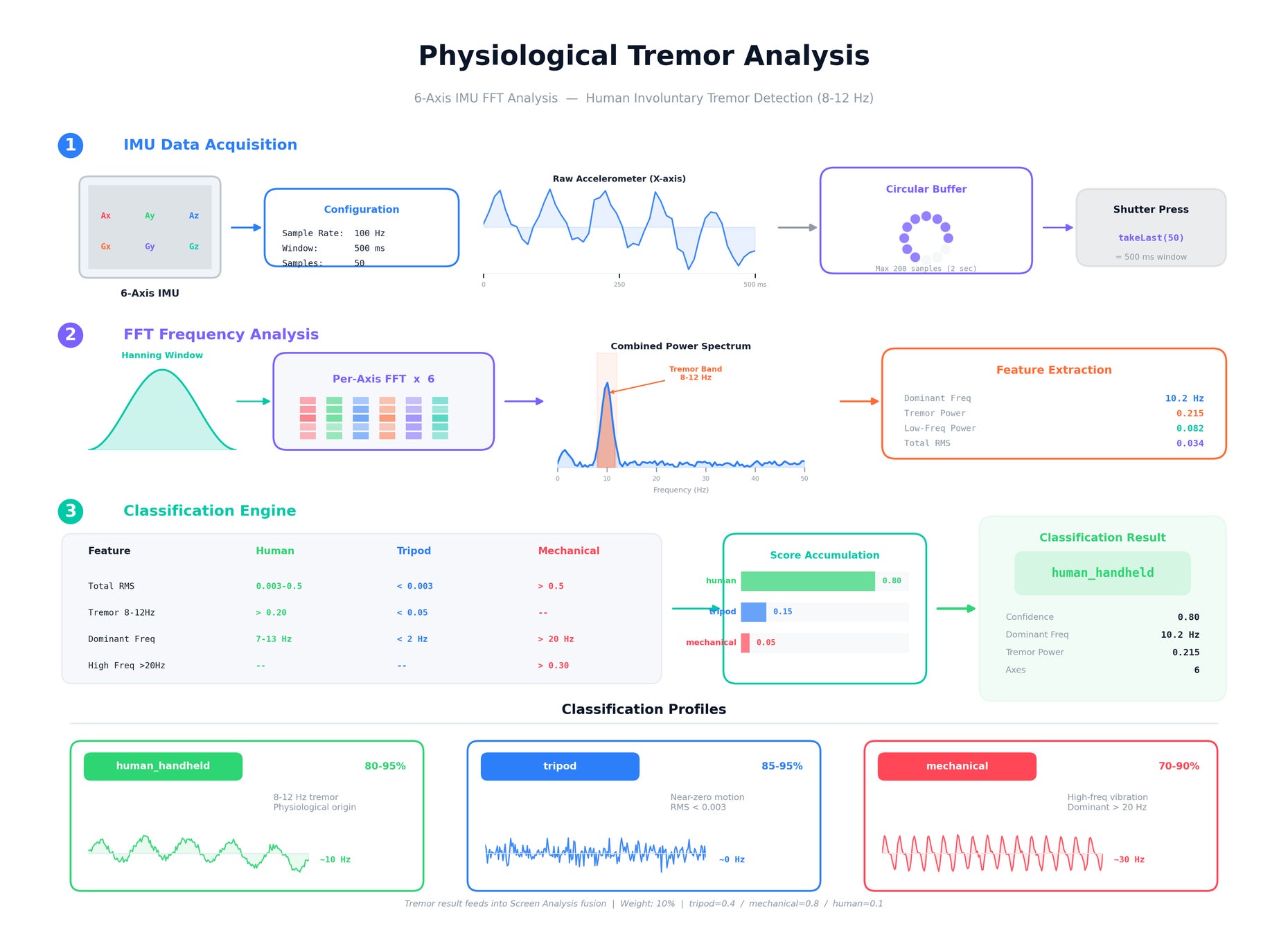 分類判定 → human_handheld / tripod / mechanical / unknown