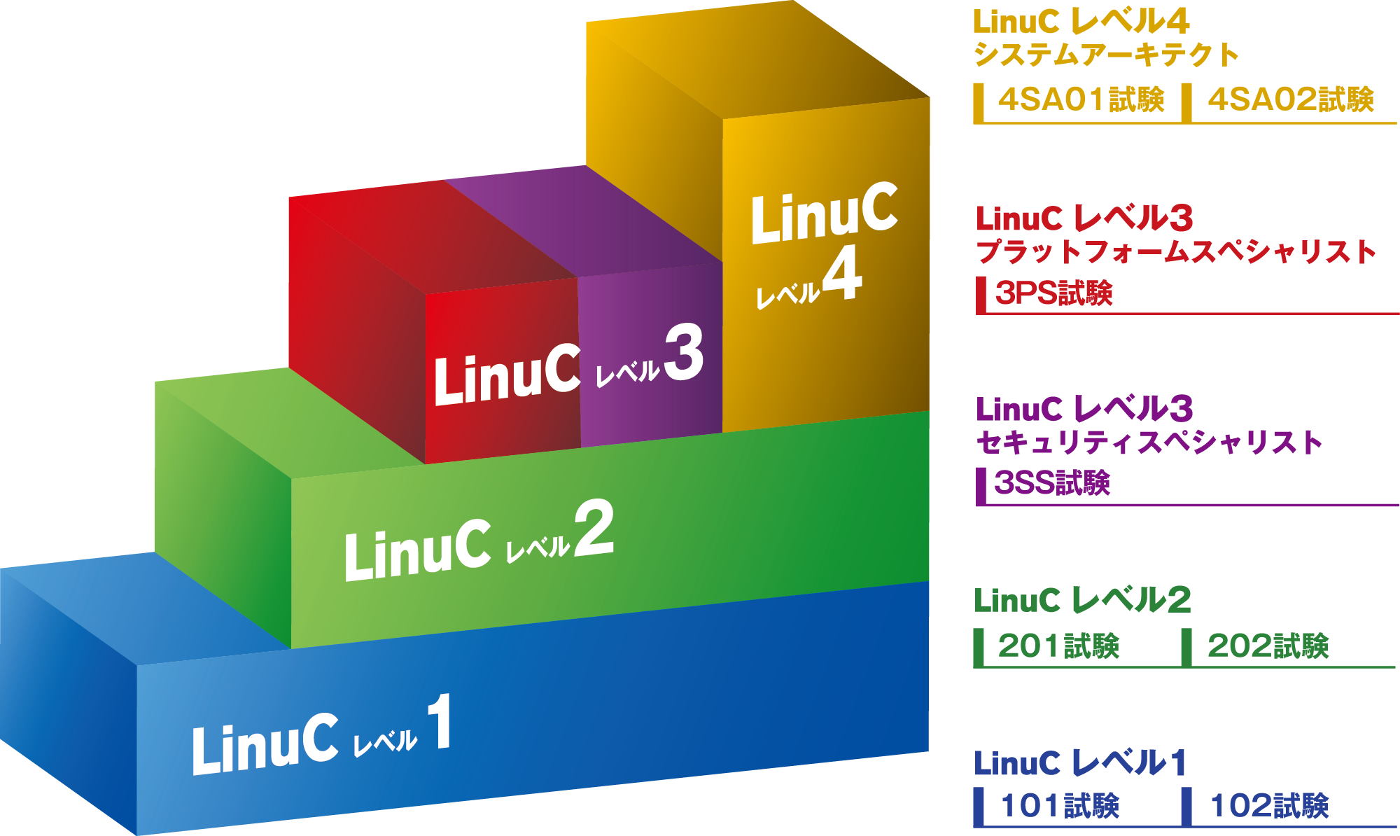 LinuCレベル3 プラットフォームスペシャリスト(省略形:LinuC-3 PS) LinuCレベル3 セキュリティスペシャリスト(省略形:LinuC-3 SS) |