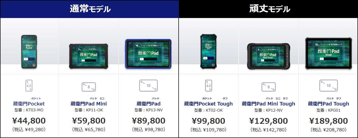 今回、新たに10インチタフモデル『蔵衛門Pad Tough』が加わることで、『蔵衛門Pad』シリーズは全6モデルとなります。目的や予算によって選ぶことができ、大企業から小規模企業のお客様まで導入しやすいラインナップとなっています。