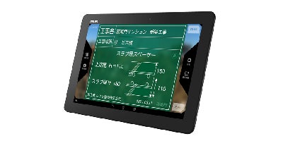 タブレット型 電子黒板カメラとして工事写真撮影はもちろん、クラウドを利用した遠隔臨場・トーク(工事チャット)・図面のリアルタイム共有なども実現(※4)。