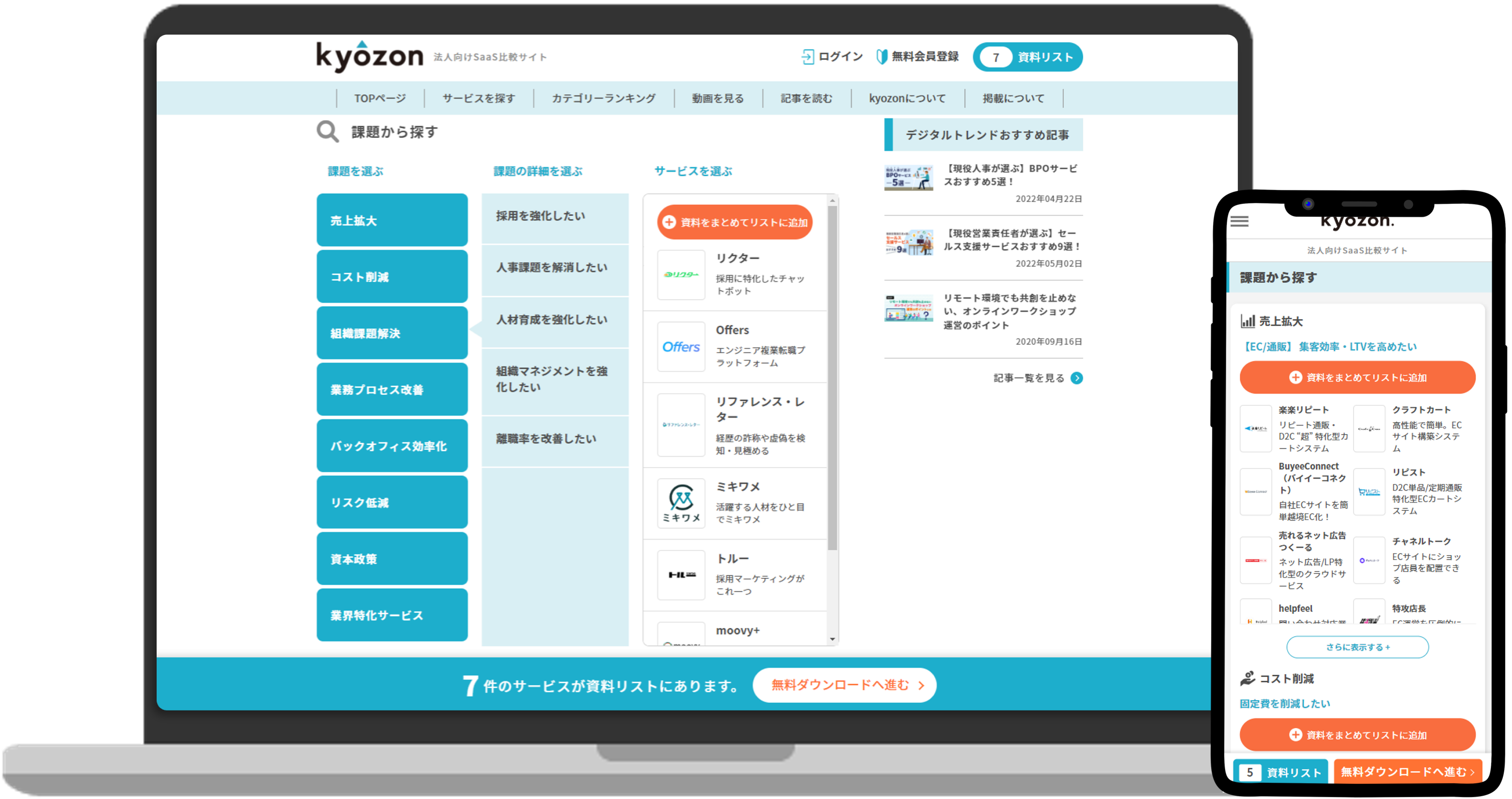 kyozonは、日々の業務を通じて様々な課題を抱えるビジネスパーソン、企業のみなさんに、課題解決に繋がるサービスの情報をお届けするためのメディアです。みなさまがより快適に、よりサービスを見つけやすくするため、この度リニューアル第2弾を行わせていただきました。