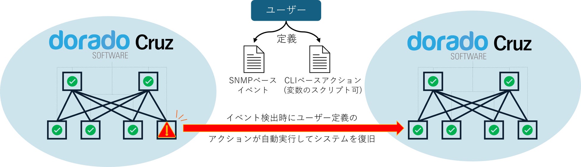 初期プロビジョニングからバックアップ・リストア・構成変更プレビュー・イベント検知時の自動アクションまで、運用負荷低減と信頼性向上に寄与する高度な自動化機能を備えています。また、任意のオペレーションが実行可能なRestAPIを持ち、上位のアプリケーションとの連携にも優れています。
