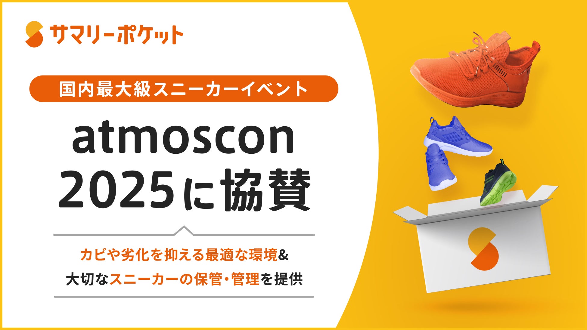 株式会社サマリー(本社:東京都千代田区、代表取締役:日下部康介)が運営する、荷物保管サービス「サマリーポケット」は、「atmos」が運営する国内最大級のスニーカーイベント「atmoscon 2025」へ協賛します。本協賛において安心・安全でスニーカー保管に最適な保管サービスを通じ、スニーカー文化のさらなる発展を支援するとともに、スニーカーファンの皆さまのライフスタイルの質の向上に貢献してまいります。