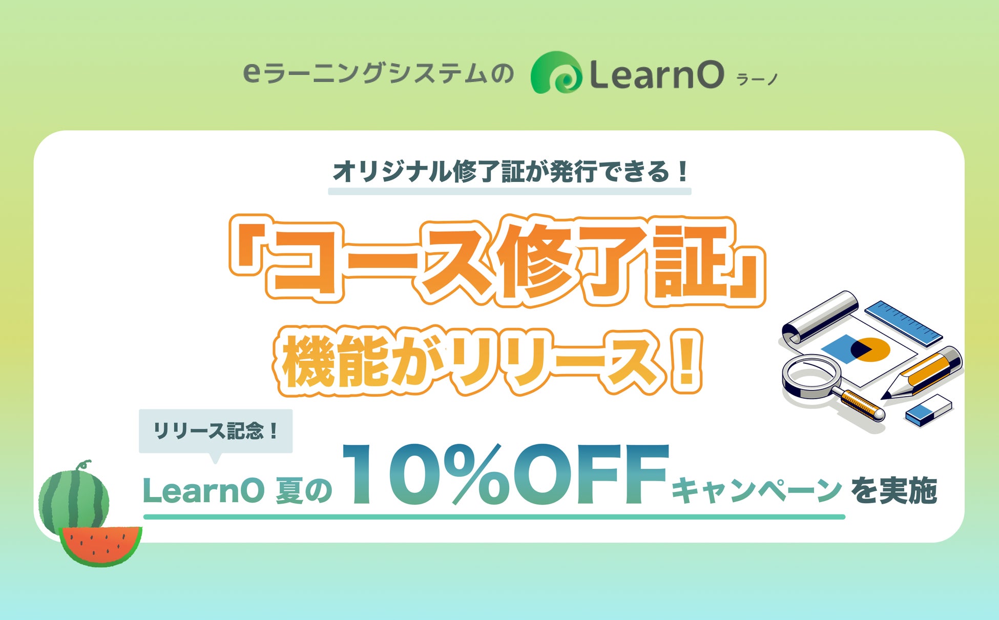 オンライン学習のモチベーションUP!新機能「コース修了証」が登場。eラーニングシステム「LearnO(ラーノ)」最短1か月からお試し可能な10%OFFキャンペーン実施。