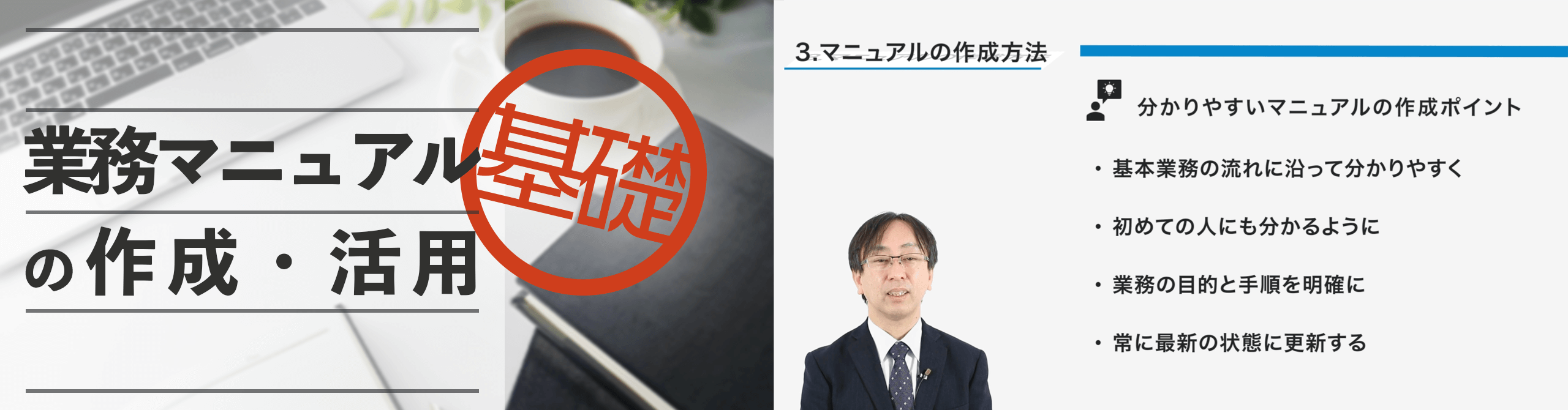 作成方法が分からない方や、形骸化したマニュアルの運用に困っている方にオススメの講座です。