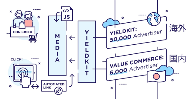 パフォーマンスマーケティングカンパニーであるバリューコマース株式会社(東京都千代田区、代表取締役社長 最高経営責任者:香川 仁、以下、バリューコマース)は、5,000強のメディア(コンテンツ事業社)、72のメディアネットワーク、50,000の広告主を擁し、オンラインパフォーマンスマーケティングを支援するテクノロジープラットフォーム、Yieldkit GmbH(本社:ドイツ・ハンブルク、CEO:Daniel Neuhaus、以下、イールドキット社)と、2022年8月1日、アフィリエイト事業に関する提携をしました。