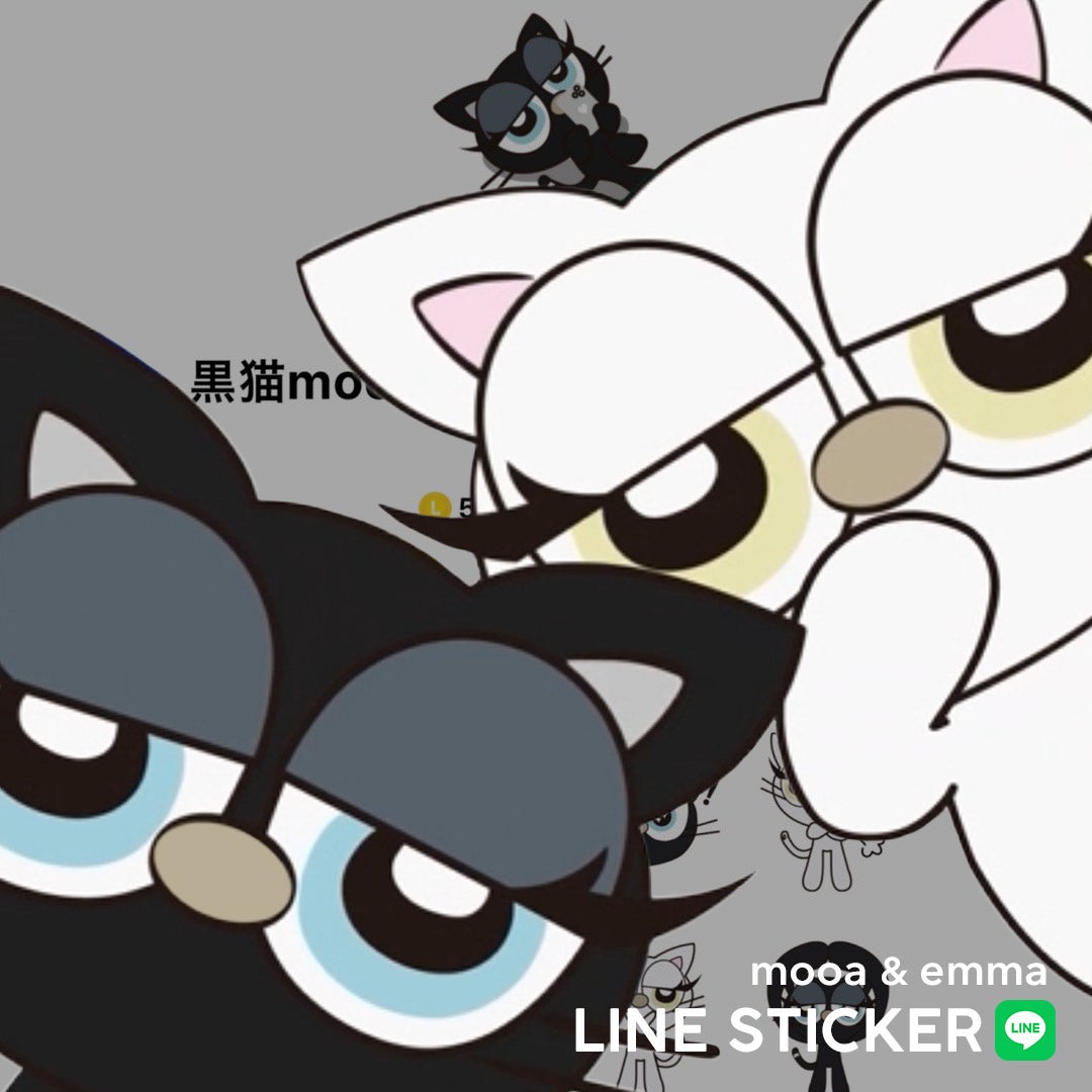 黒猫mooa(モア)と白猫emma(エマ)の2匹のキャラクター