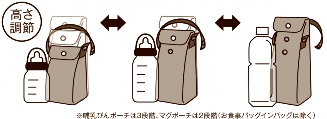 あるようでなかった!? 荷物の多い赤ちゃん連れのお出かけにおすすめ!“かさばらない”「哺乳びんポーチ」「マグポーチ」 “スッキリまとまる”「お食事バッグインバッグ」2016 年3 月下旬新発売