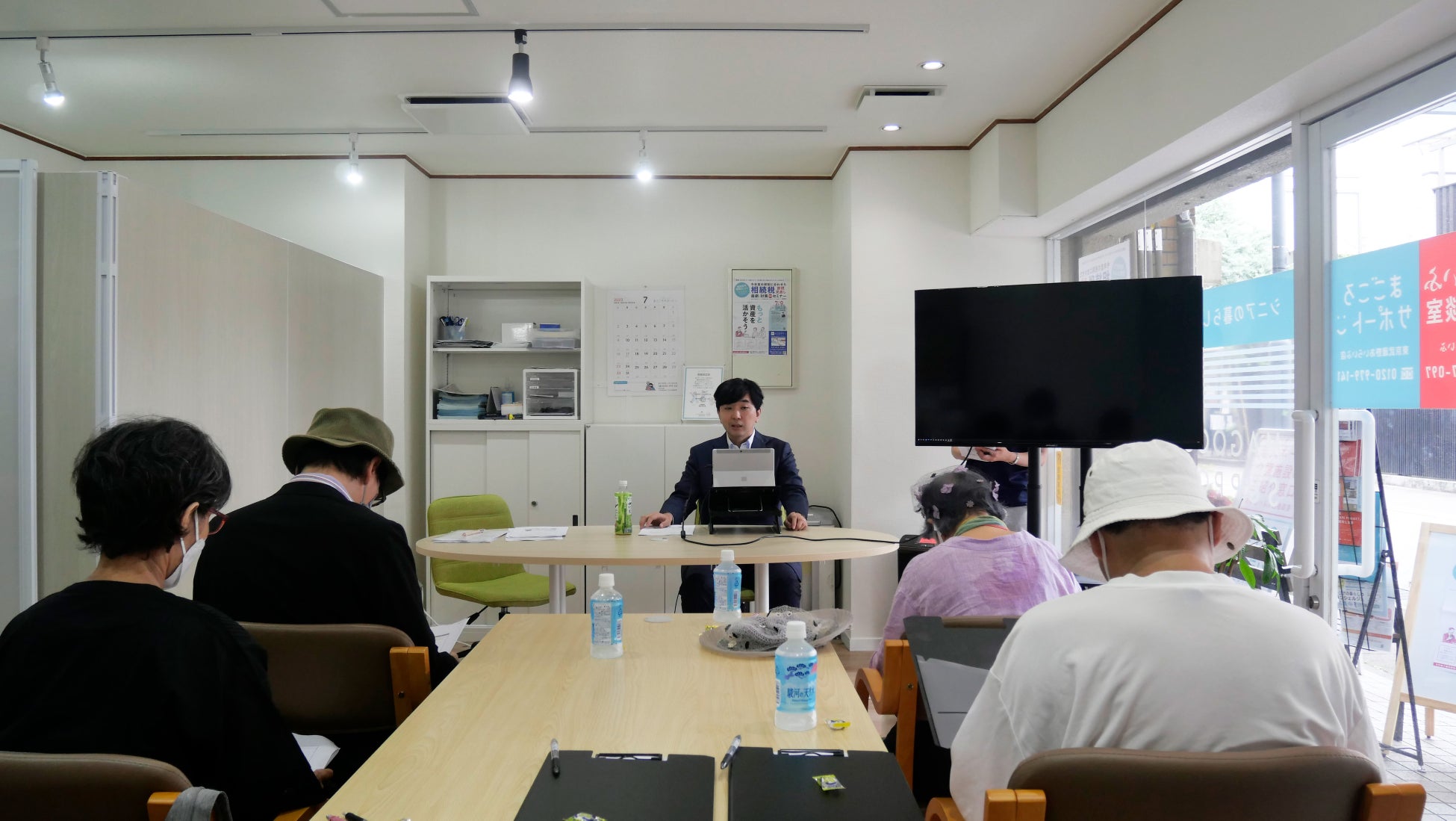 「まちの【無料】介護相談会」は、介護に関わる疑問と不安の解消を目的とした相談会で、5月に引き続き今回は2回目、会場とオンラインの同時開催となりました。テーマは、初回「介護にかかるお金と戻るお金」に続き、今回は「相続税対策」でした。
