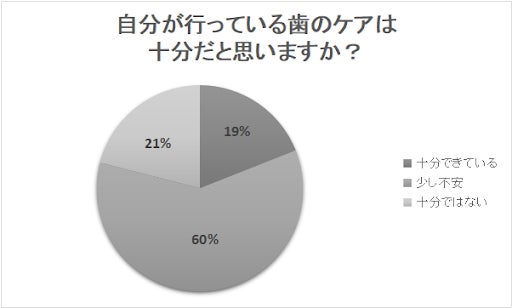 次に、日頃自分が行っている歯のケアは十分できているのか?ということについてもアンケートを行いました。すると、60%の人が「少し不安」と答えたのです。