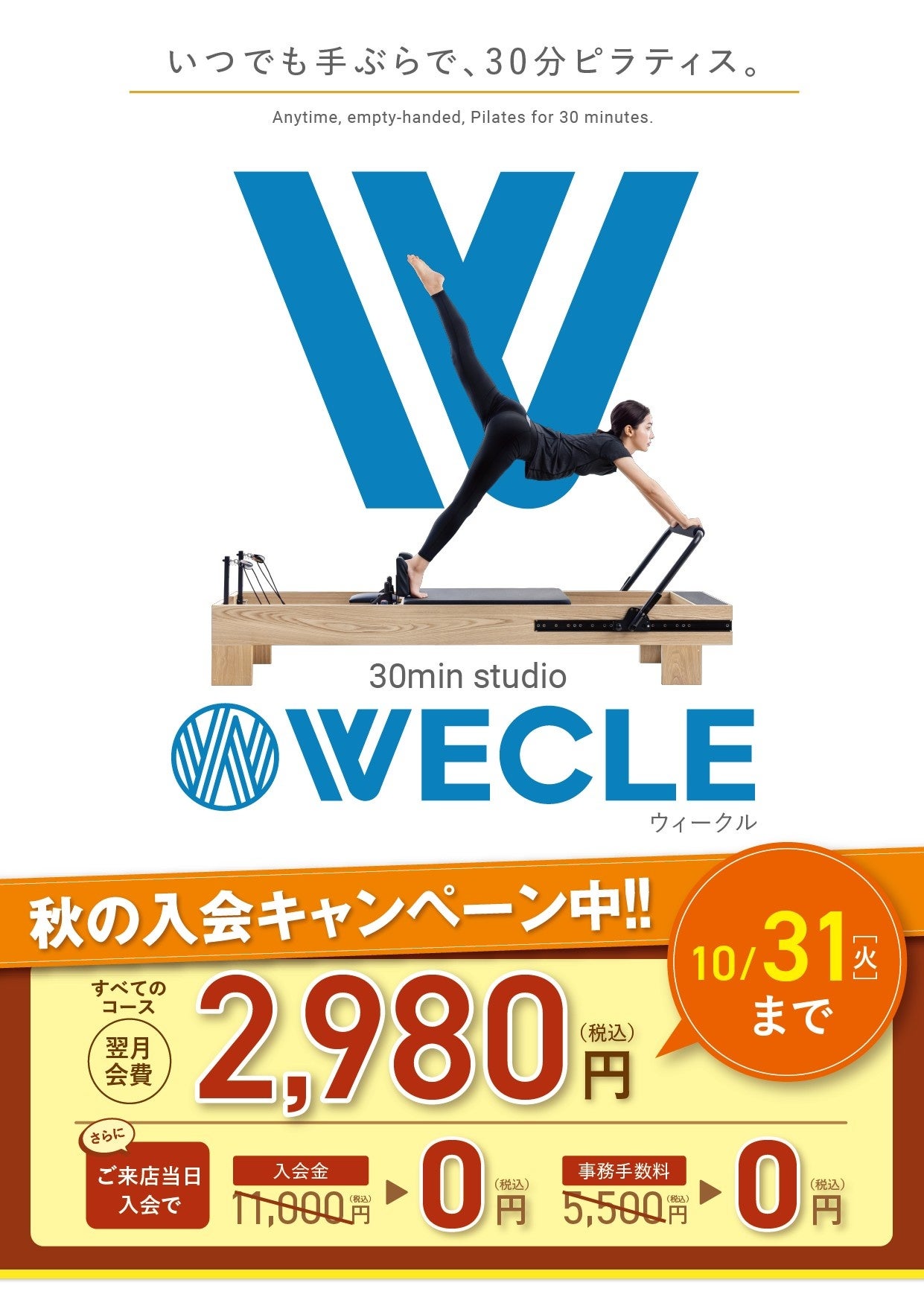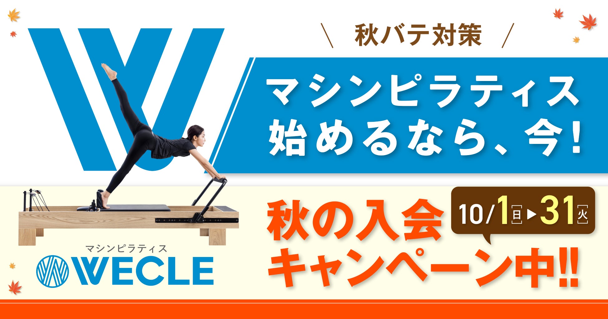 マシンピラティス専門店のWECLE(ウィークル)が秋バテを解消する新規入会キャンペーンの第一弾をスタート。いつでも手ぶらで30分のマシンピラティスをはじめるなら、2,980円の今がチャンス!