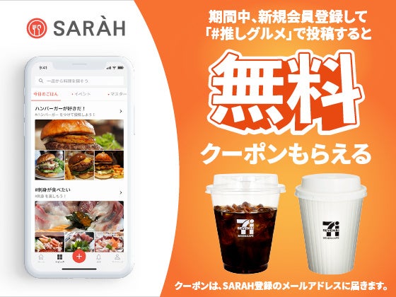 SARAHに登録&投稿で対象のセブンカフェが無料に! 期間限定で、12月1日(金)から特別クーポンのプレゼントキャンペーンを開催