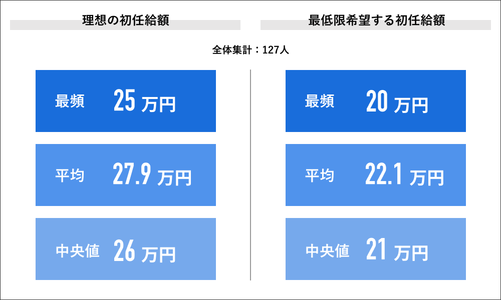 【初任給の理想と最低希望額】