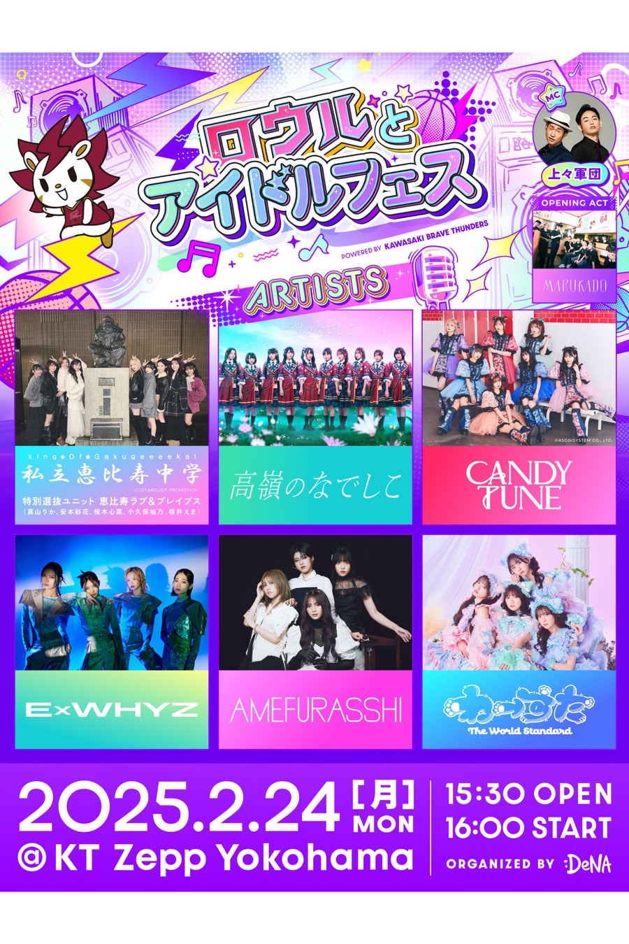 株式会社ディー・エヌ・エー(本社:東京都渋谷区、代表取締役社長兼CEO:岡村信悟、以下 DeNA)は、音楽イベント「ロウルとアイドルフェス powered by KAWASAKI BRAVE THUNDERS」(2025年2月24日(月・祝)、KT Zepp Yokohama)を開催します。