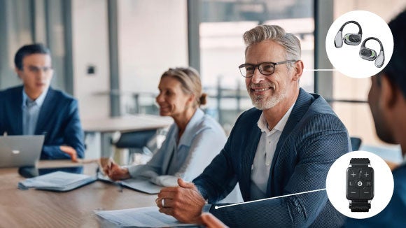 会議中や広い場所でもおすすめです。聞き取りづらい時は、集音器を腕からはずし机の上に置けば、より大きく聞くことができます。