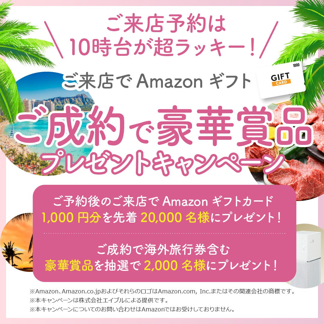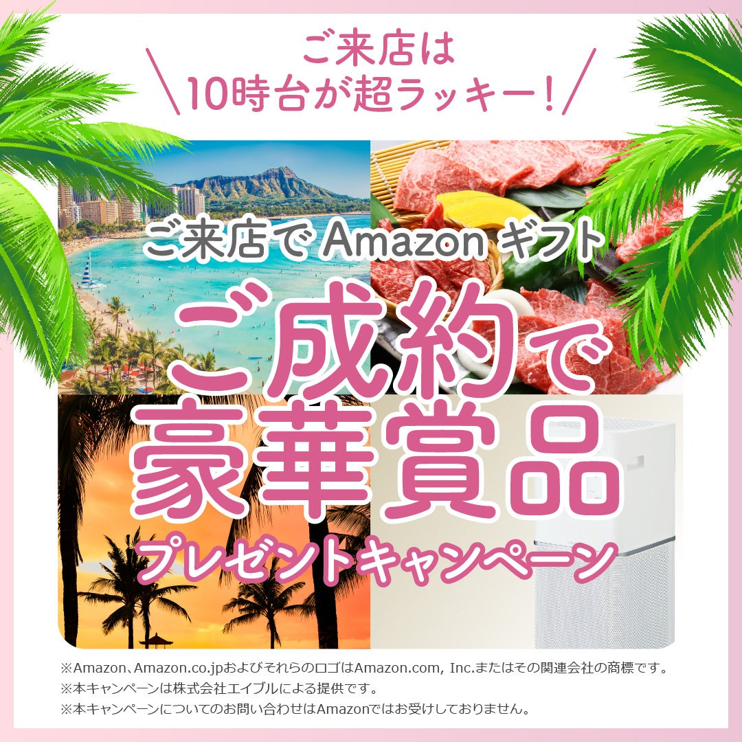 ご来店予約は10時台で決まり!条件を満たすとAmazonギフトカードや抽選で豪華賞品が当たるご来店予約&ご成約Wプレゼントキャンペーン実施!