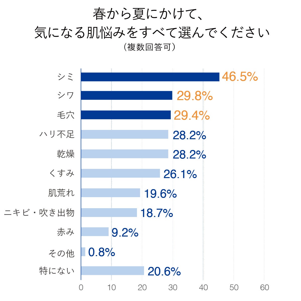 🔳春夏の肌悩みのトップは「シミ」。2人に1人が悩みを実感