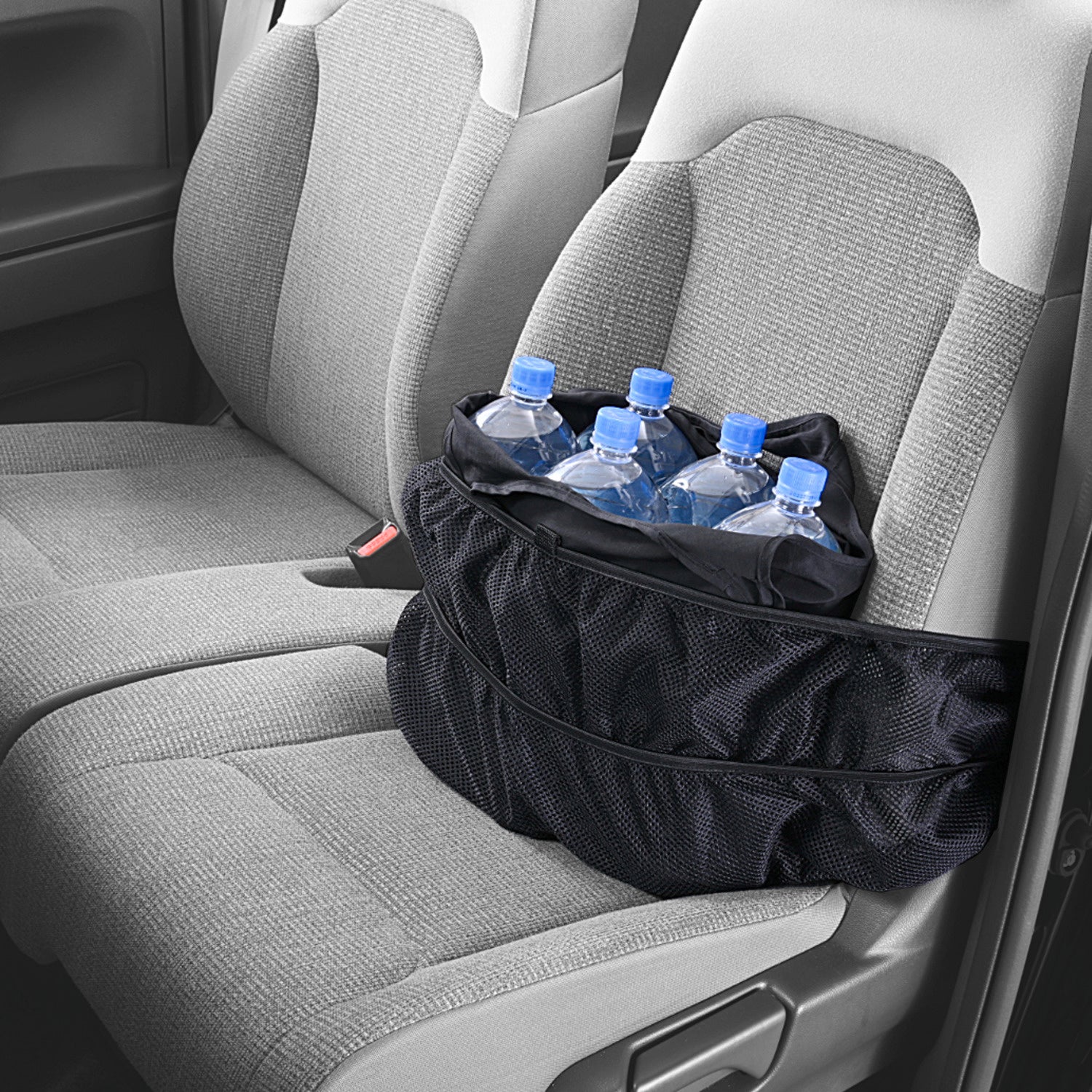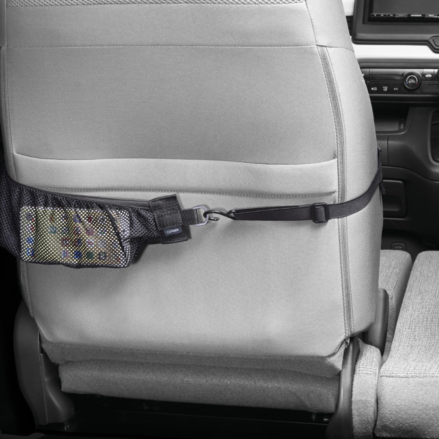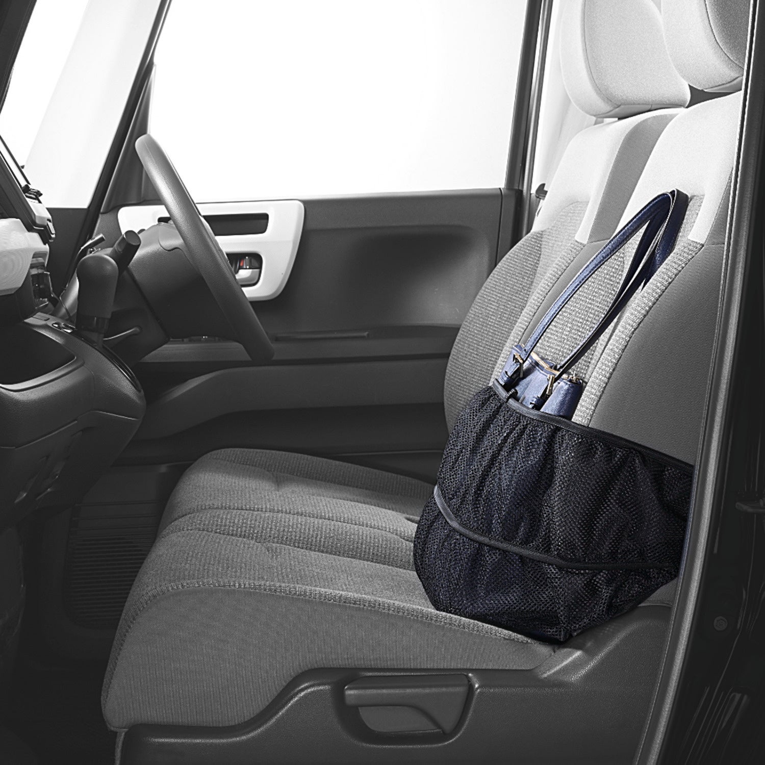 ■あらゆる車で使用可能。取り付け簡単で、後部座席用の小物入れとしても使える