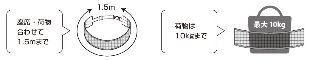 ■ホールド可能サイズ:座席・荷物を合わせて1.5mまで