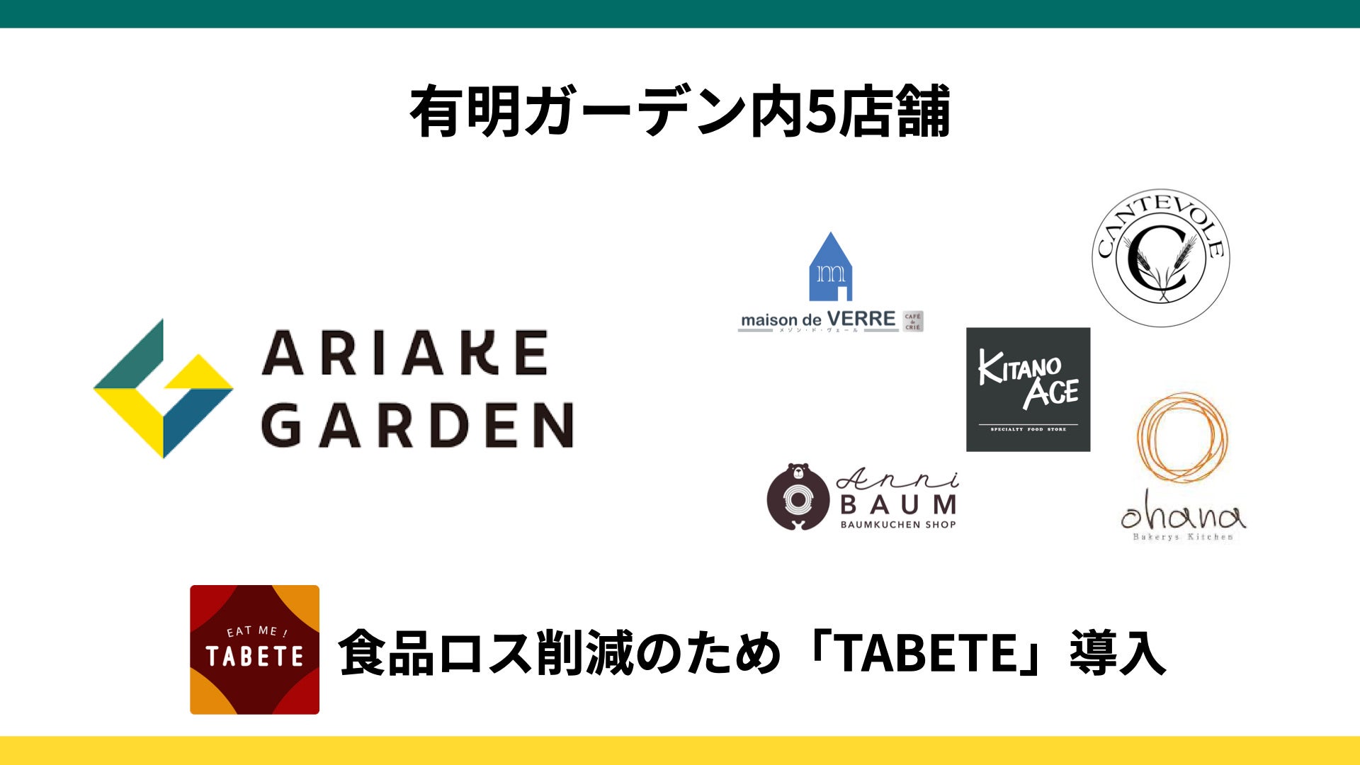 住友不動産商業マネジメント株式会社が運営する住友不動産 ショッピングシティ 有明ガーデンの食物販5店舗にて、株式会社コークッキングが運営する、国内最大級の食品ロス削減のフードシェアリングサービス「TABETE」が導入されました。さらに導入参加店舗を増やしていき、商業施設内の食品ロス削減を目指します。