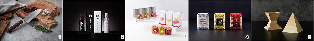 全受賞対象のうち特に評価の高かった対象に贈られる「最高金賞」に選ばれたのは、村の鍛冶屋(株式会社山谷産業)の「名栗 三徳包丁」、亀甲萬本店(キッコーマン食品株式会社)の「亀甲萬本店 御用蔵シリーズ」、サラウンディング株式会社の「石川県産ブランド果実ジャム」、株式会社純情米いわての「純情米いわて 岩手県産キューブ米 3種」、COETECOの「KiSEKI『ウッドグラス』」の5対象です。