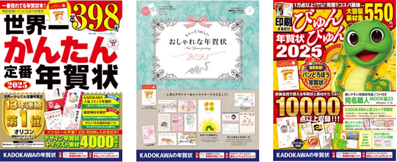 年賀状作成の幅広いニーズに応える「KADOKAWAの年賀状素材集2025年版」は、全国の書店およびオンライン書店にて発売します。
