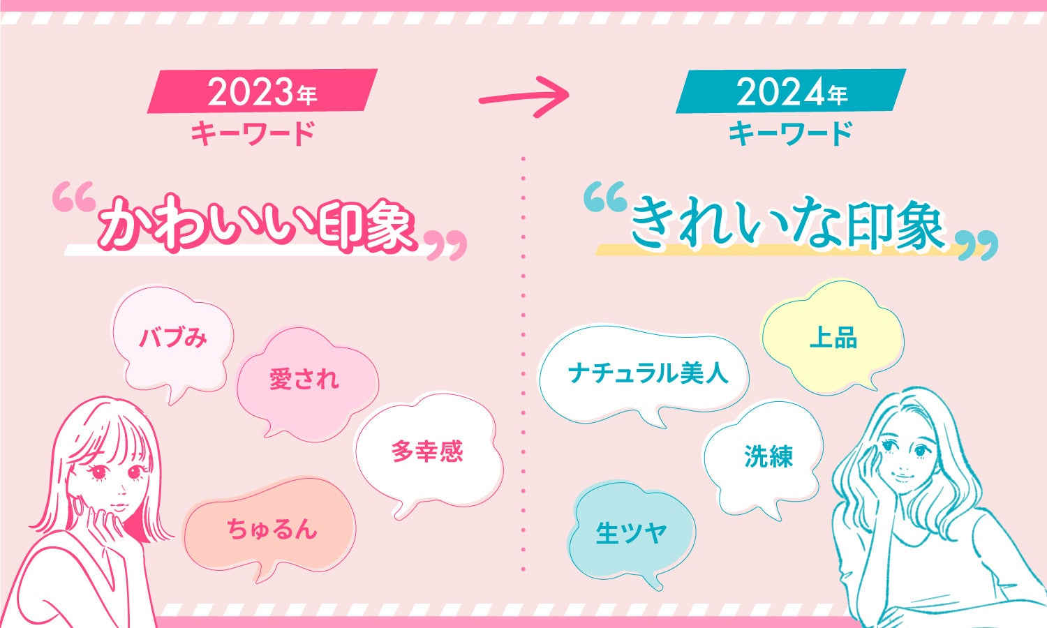 2023年はトレンドとなったメイクやアイテムを見ても、粘膜色をはじめ血色感や多幸感があり、"ピュアでかわいい印象"となるアイテムやキーワードが目立ちました。