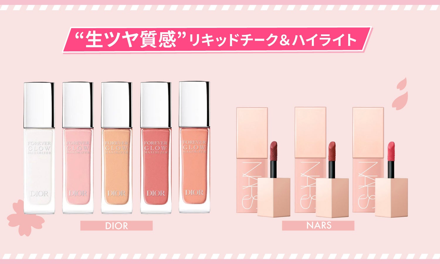 この春もそんなNARS「 アフターグロー リキッドブラッシュ」に春の新色が追加のほか、DIORからも「ディオールスキン フォーエヴァー グロウ マキシマイザー」が登場。