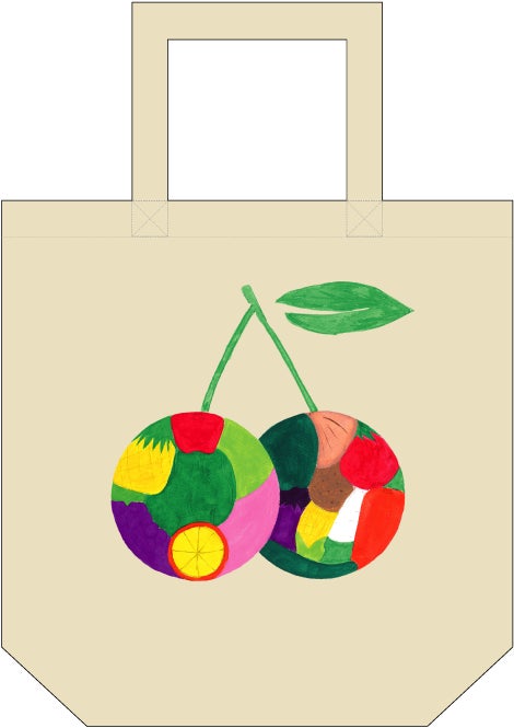 「ワクワク!」といえば、私は真っ先に食べ物を思い浮かべました。食べ物の中でも私が好きなさくらんぼをモチーフにして、実の部分にあたるところを左に果物、右に野菜を配置して描きました。実際にはありえないさくらんぼなので私以外の人が見ても、みんながワクワクするようなデザインを意識しました。背景は彩色しないことで、よりカラフルさを目立たせて可愛らしいトートバックにしました。