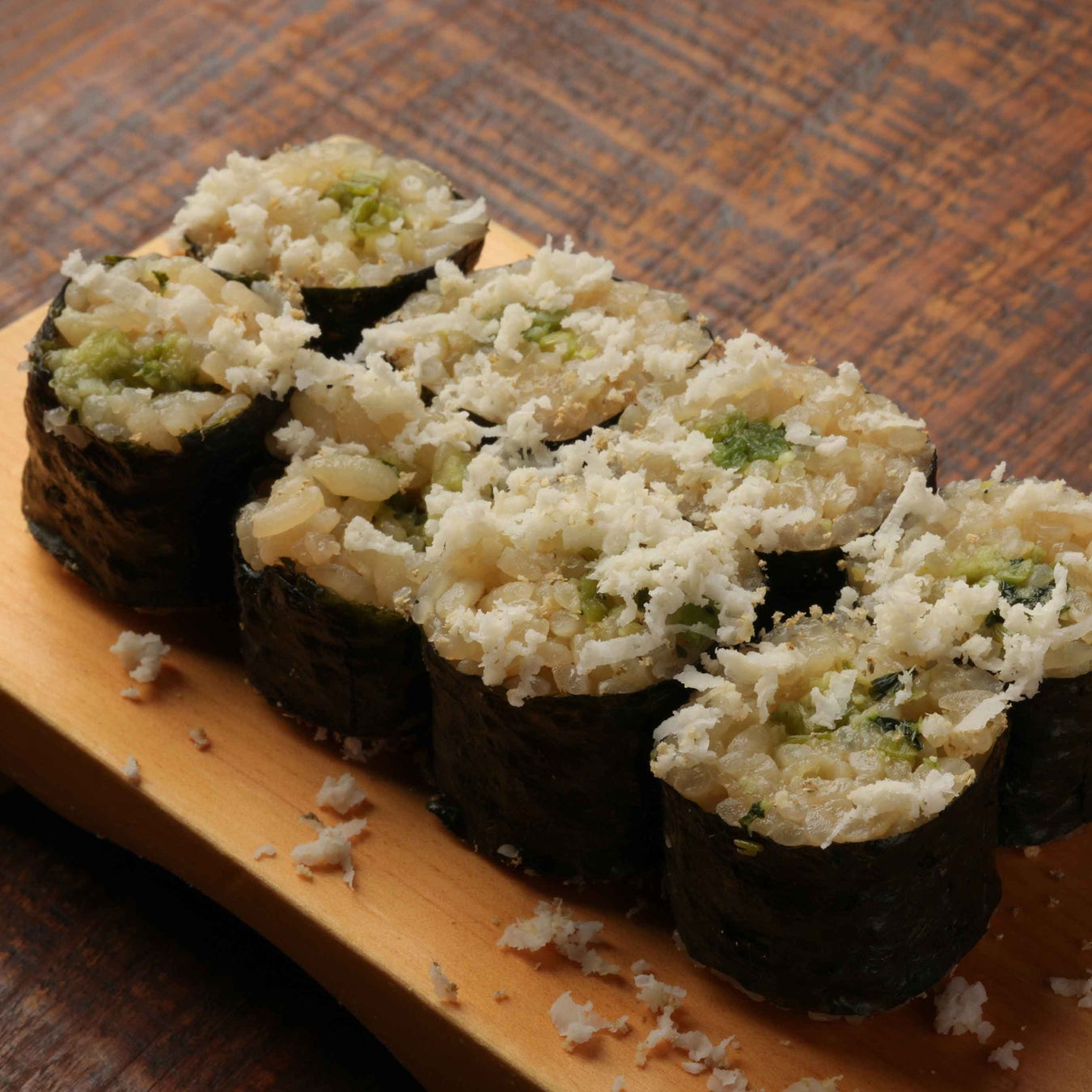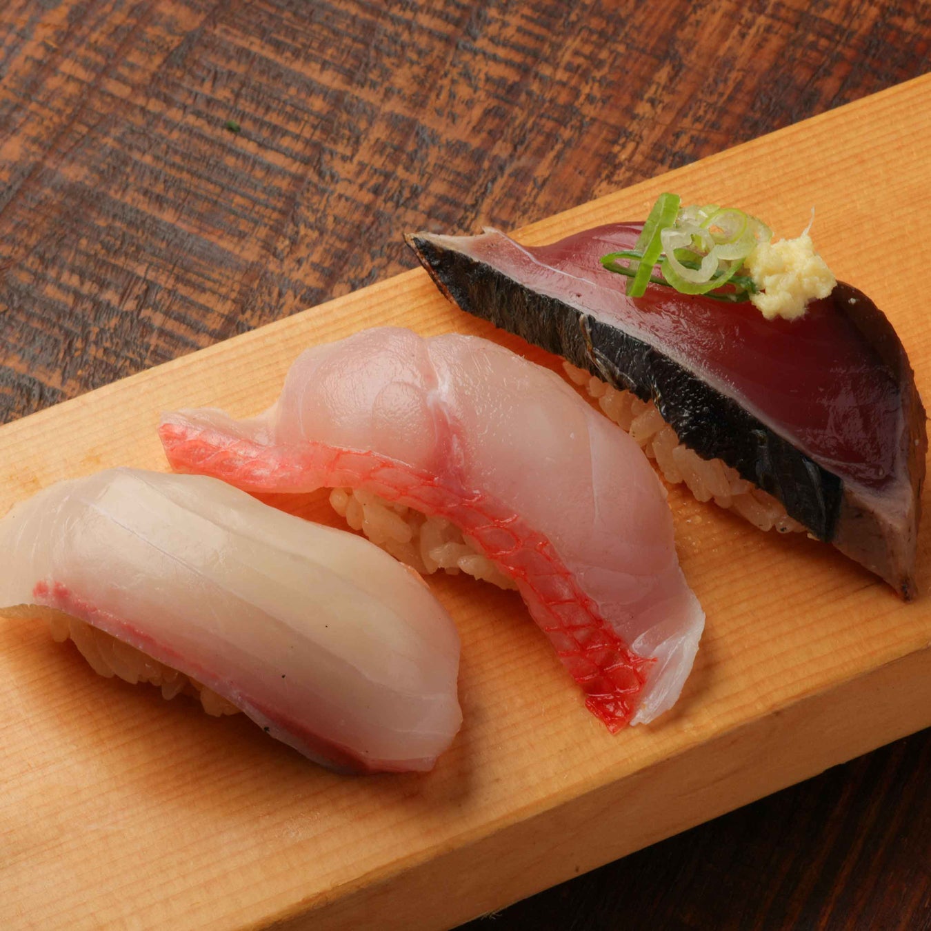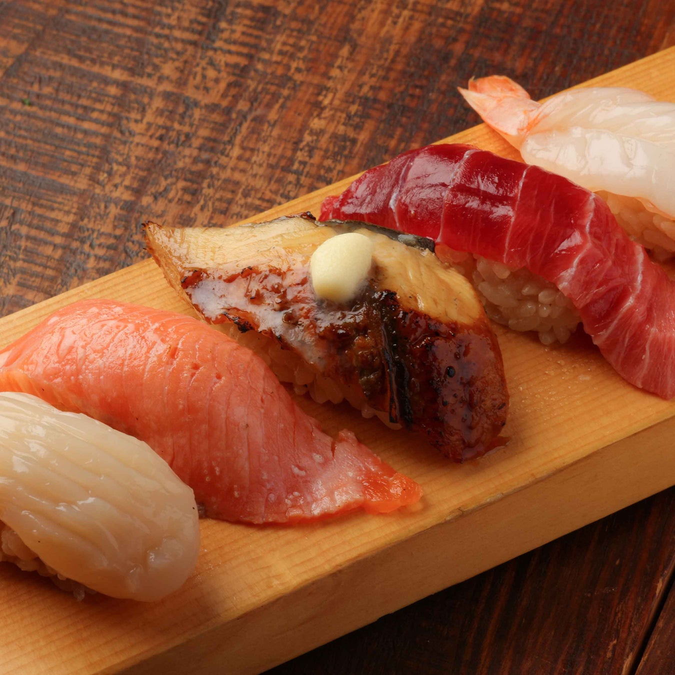1つ目の柱は旬の日替わり釣り魚・地魚・希少鮮魚を味わえる握り寿司。気軽に楽しんでいただくため、一貫90円(税抜)~とリーズナブルな価格でご用意いたします。”あて巻き”は定番の「トロタク」はもちろん、すじこと納豆や〆鯖とガリなど名前の通り"酒アテ"にもなる組み合わせを種類豊富に取り揃えております。