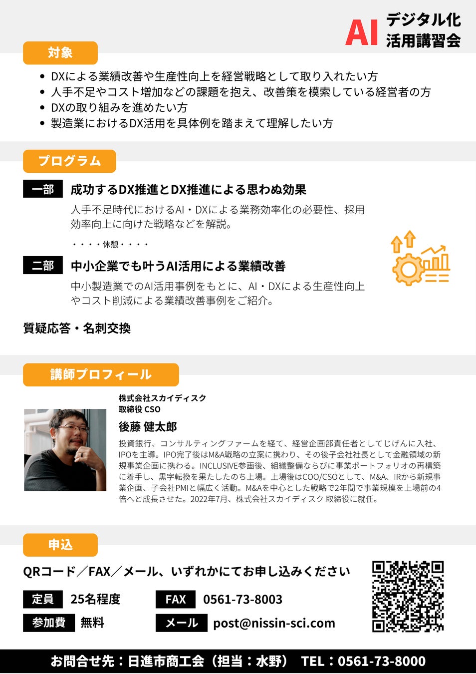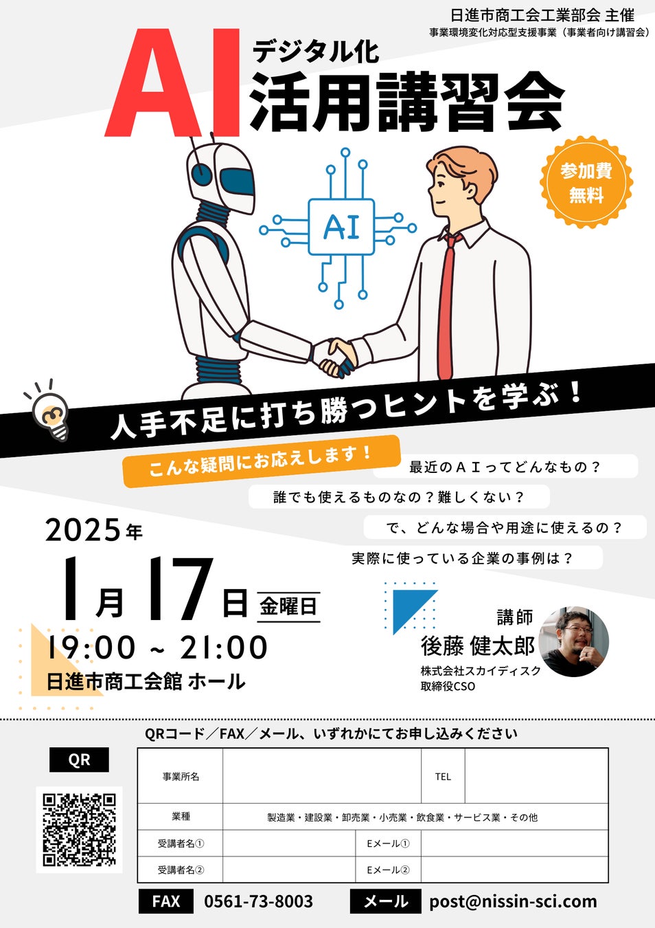 【1/17(金)開催】スカイディスクが日進市商工会主催の「デジタル化 AI活用講習会」に登壇します