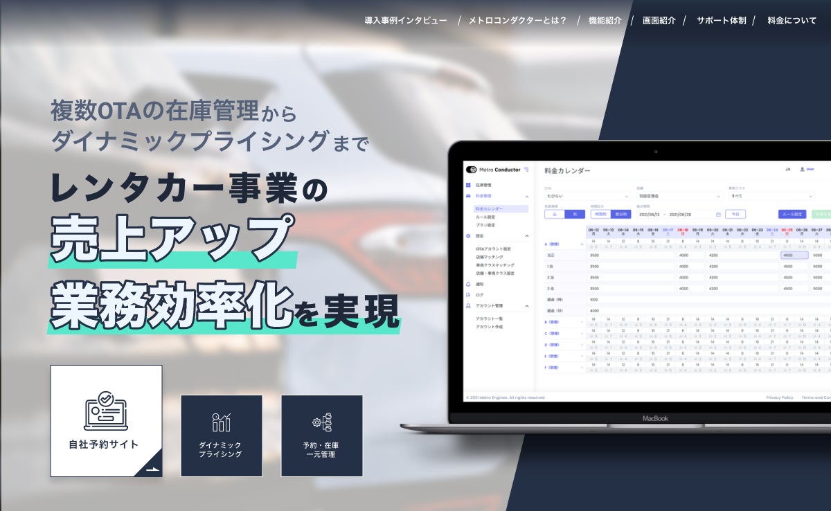 メトロエンジンは、効率的なレンタカー事業運営をサポートするツールとして『メトロコンダクター』を提供し、レンタカー業界のDXを推進しております。
