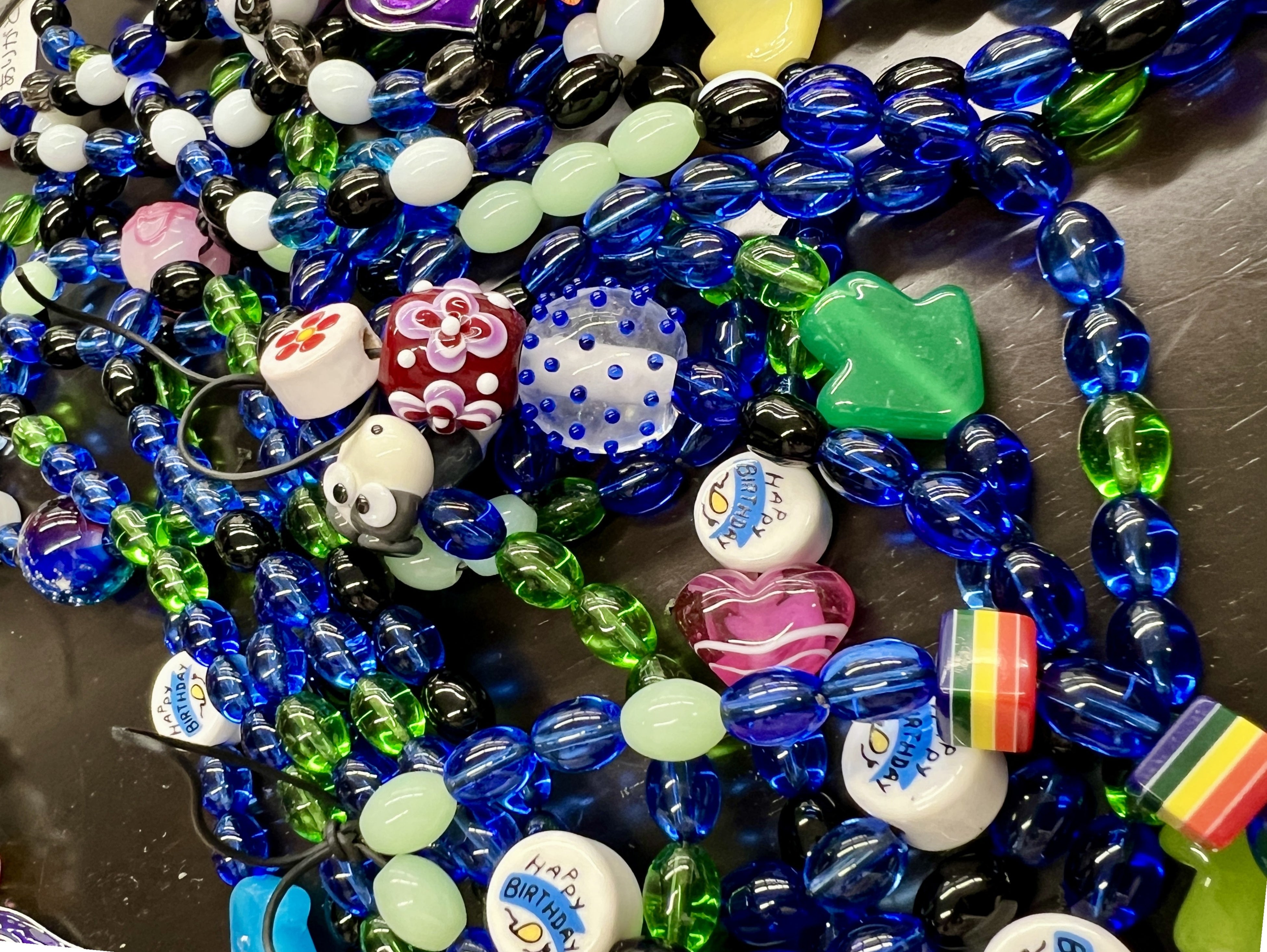 子どもたちは治療の過程を色とりどりのガラスビーズで記録していきます。輸血したときは赤いビーズ、髪が抜け始めたときは顔のビーズなど、処置や治療ごとに決められたビーズを、ビーズ大使である医療スタッフと対話しながら子どもが自らつなぎます。