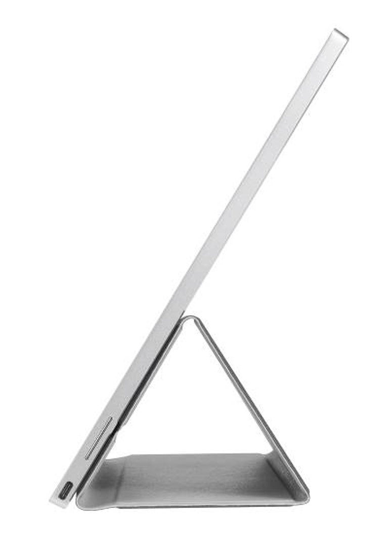 「LG gram +view 16MQ70」は、16インチのLG gram(W356×H243×D17mm)とほぼ同サイズで、ディスプレイ本体の重量は670g、付属カバースタンドを含めても990gと軽量。