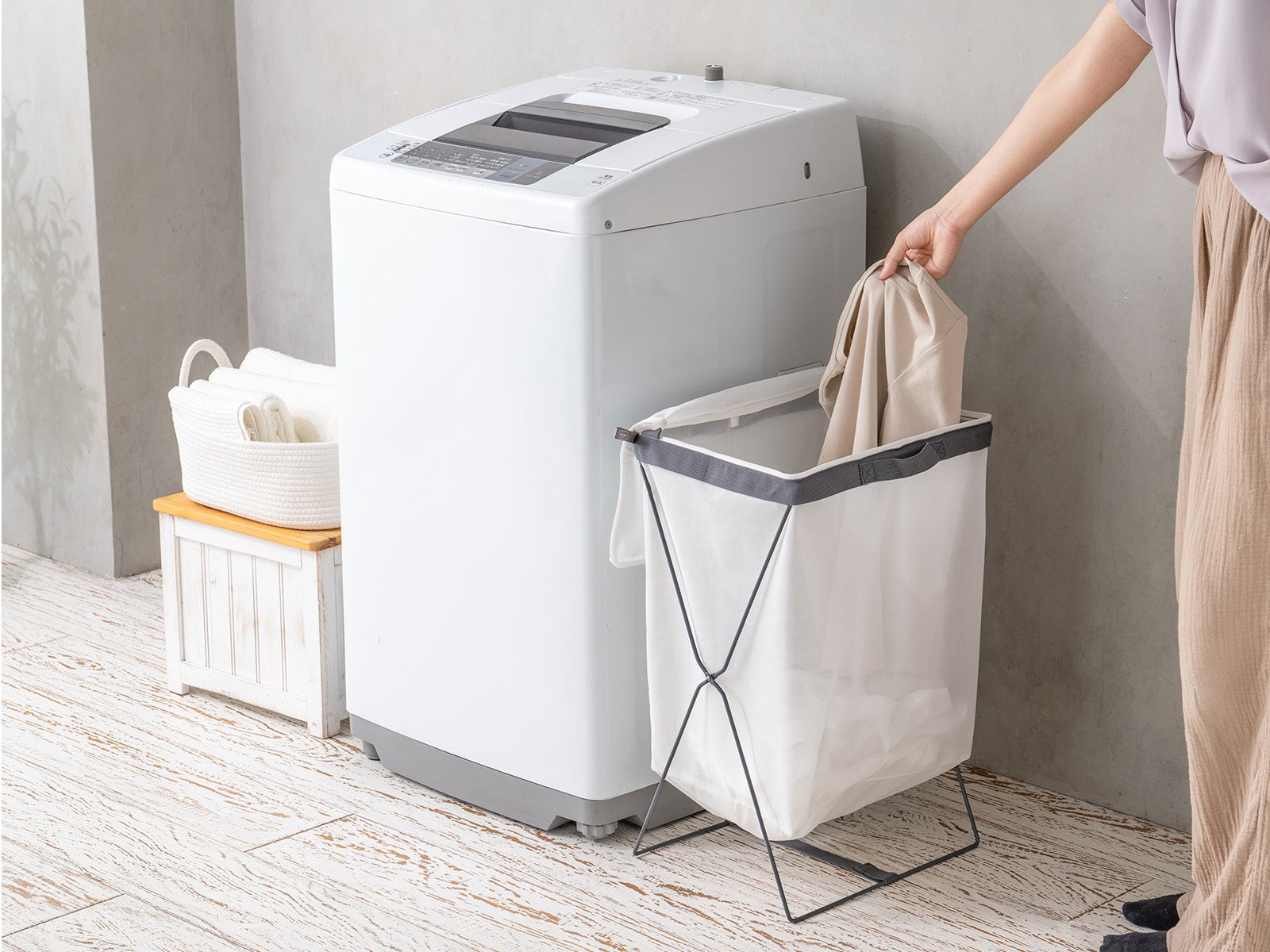 ~ スタンドに洗濯ネットを組み合わせた大容量45Lの洗濯カゴ ~