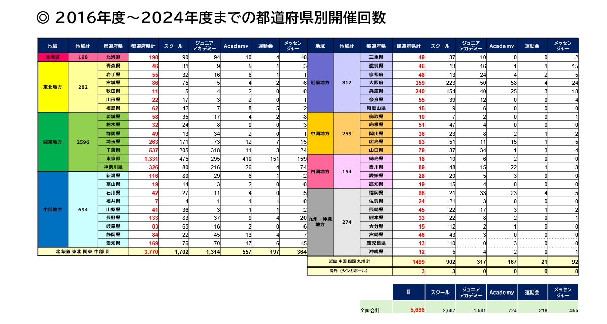 2025年度は、株式会社JTB、株式会社アシックス、日本電気株式会社(NEC)、日本航空株式会社(JAL)、中外製薬株式会社の協賛5社の皆さんと協力しながら 、全国で年間900回以上の開催を目指します。