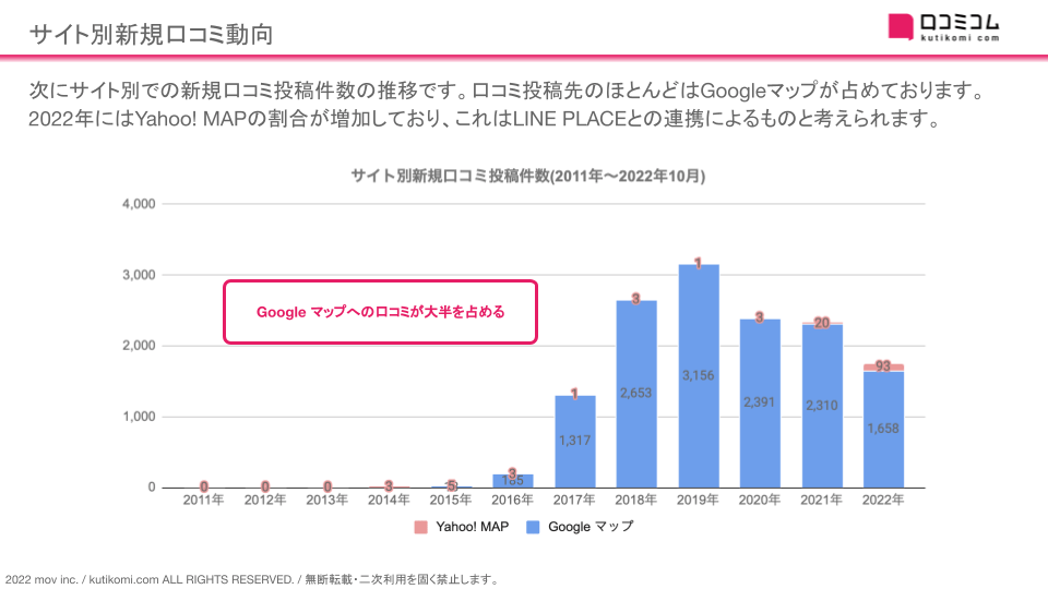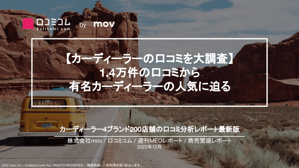 口コミサイトを”もっと”売上に変える店舗支援SaaS「口コミコム」を運営する株式会社mov(代表取締役:渡邊 誠、本社:東京都渋谷区、以下mov)では、『口コミコム』の分析機能を用いてレポートを作成しています。