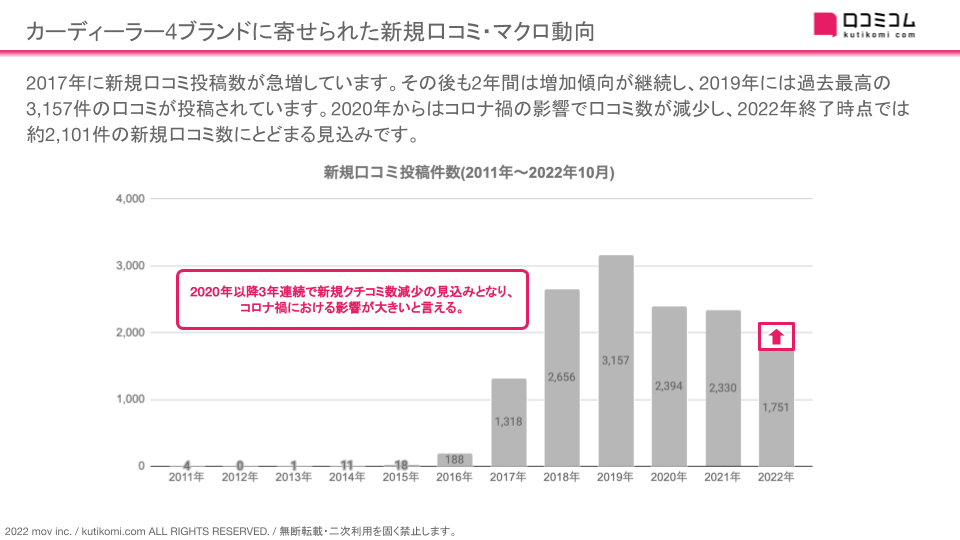 ・2017年に新規口コミ投稿数が激増していること