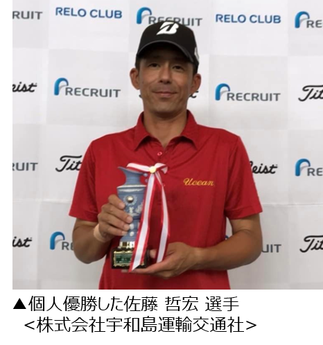 株式会社宇和島運輸交通社チームは5位と見事、来年の全国決勝のシード権を獲得。その立役者となったのが佐藤哲宏選手。チーム内唯一の70台をマークし孤軍奮闘。前半37の16位タイとしながらも後半1イーグル2バーディ1ボギーの33をマーク。3名が70の同スコアで並ぶハイレベルな戦いを大逆転。個人優勝を獲得されました。
