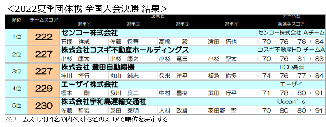 大会名: RELO CLUB全日本企業対抗ゴルフトーナメント「リクルートCUP 2022夏季団体戦」
